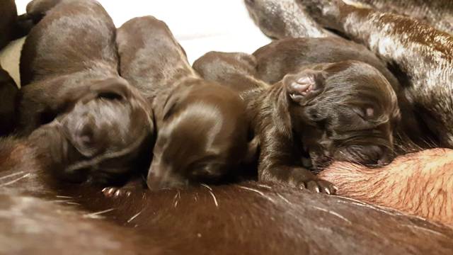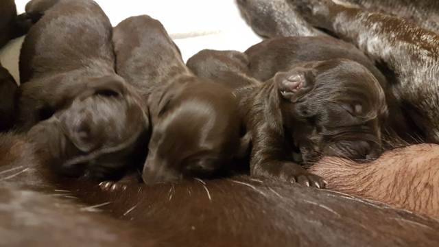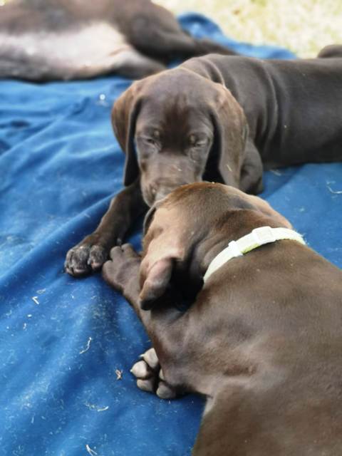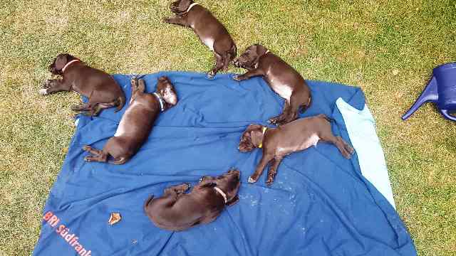 D - Wurf 4/2 Welpen Gewölft am 08.06.2022 Hündin: Chaja vom Mooser-Bruch Deckrüde: Dorian von den Donaumündungen Erste Woche. Zweite Woche. Dritte Woche. Vierte und fünfte Woche. Sechste Woche. Siebte und achte Woche. Wir wünschen allen viel Glück und Freude mit ihrem Hund!